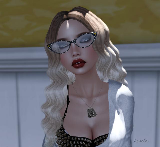 Now onto the fashions! I have an extra piccy for you! I purchased the delectable new Harely skin from Pink Fuel and decided you need to see her face in all her close up gorgeousness! I'm also sporting one of SAKIDES stunning offerings for the Love Donna Flora Event, the Mosaic dress in white, a tea dress style, simple and elegent with a summery paisley pattern and a changey colour hud for the design and ribbon...The event it was created for is to raise awareness and funds to help The grids very own and very talented Squinternet Larnia, and I really do suggest everyone get their butts down there to purchase some of the stunning items. This link will pop you over to the Love Donna Flora blog, it explains Squinternets condition and the goal of the event in more detail, and should you choose you can leave a wee message, I've heard she really enjoys reading them...